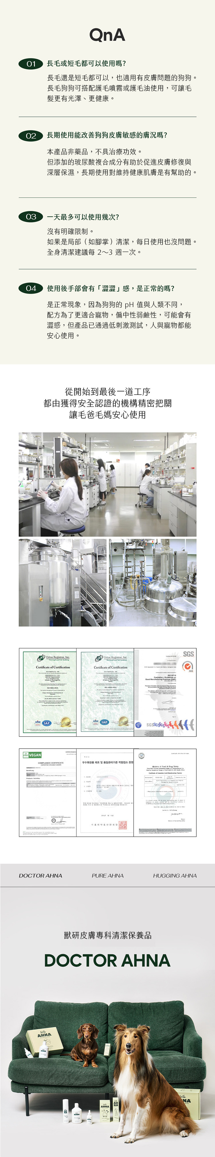 僅用一種植萃成分-乳木果油,減少環境成分對狗狗皮膚的刺激。並添加三種保濕賦活因子,小分子玻尿酸和神經醯胺,搭配多種維生素,溫和不刺激。敏感肌膚及異位性皮炎適用的狗狗洗毛精。