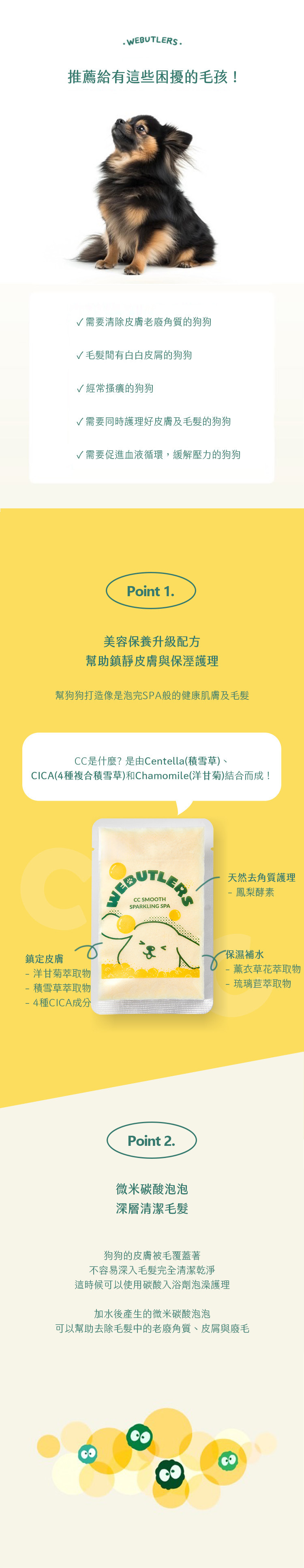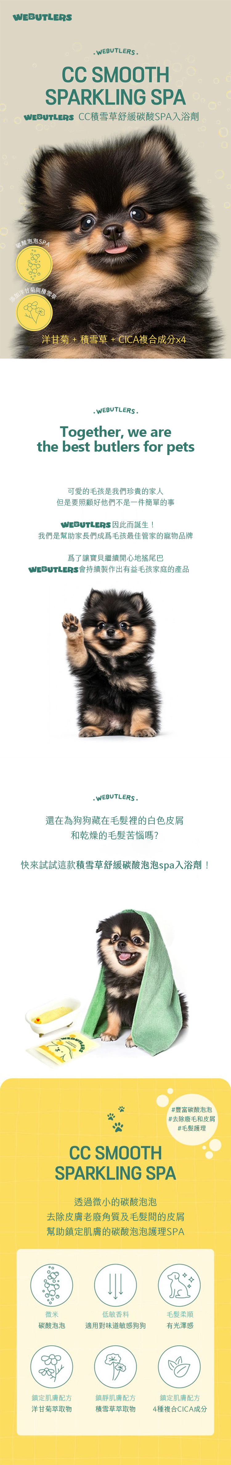 產地:韓國 有效年限:3年,最短出貨效期至2028/2/12 適用對象:3個月以上狗狗 本產品不含清潔成分,建議使用過洗毛精清潔過後再泡澡。 有心血管疾病的狗狗請諮詢過獸醫師後,再使用本產品。